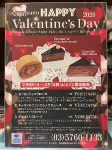 今年ももうすぐバレンタインですね! 当店でもバレンタインイベントとして、期間限定のチョコレートを使ったケーキをご用意しております! ぜひ、バレンタインにケーキを渡してみて、いかがでしょう⁉️ (数には限りがあります、お早めに)